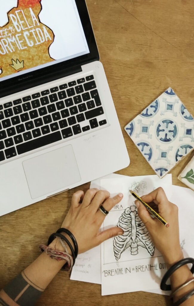 Trabalhamos juntas desde 2010, e no nosso atelier de ilustração – Nó Projectos – grande parte do nosso trabalho foca-se no universo literário, os seus autores, e ainda coleções didáticas.